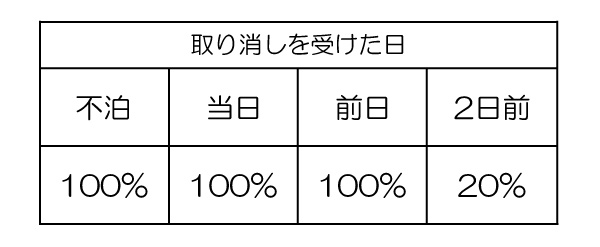 以下の通りキャンセル料を申し受けております。